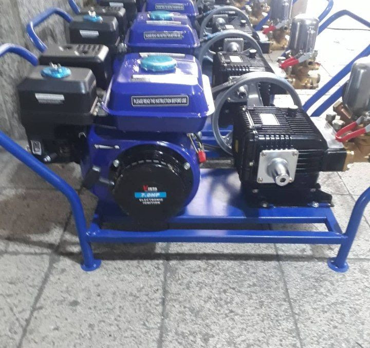 موتور تک ۷ اسب + پمپ ۶۰ بار + شلنگ ۵۰ یاری + لانس ۹۰سانت + شاسی زمبه ای ۴ میل